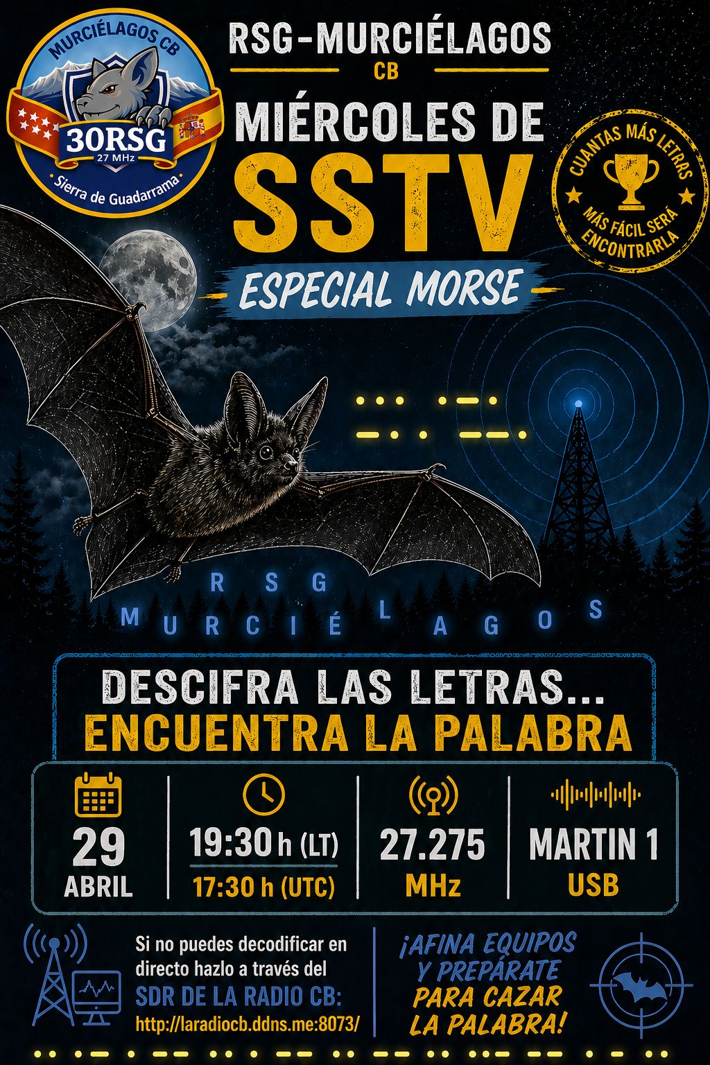Durante la sesión se transmitirán varias imágenes en SSTV que contendrán letras codificadas en Morse.